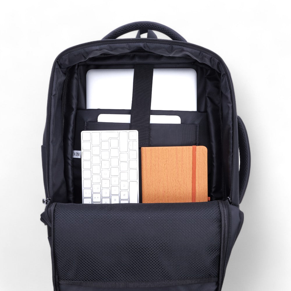 Introducing the BlackElite Chargepack, a stylish and functional backpack for professionals. With integrated charging ports, durable materials, and organised compartments, this sleek black backpack keeps you powered and connected on the go. Perfect for daily commutes, business trips, or weekend getaways, it's an ideal corporate gift to associate your brand with innovation and practicality.”