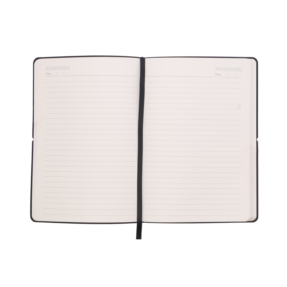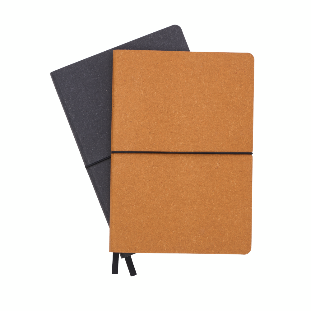 A sleek A5 hardcover notebook crafted from premium bonded leather, secured with an elastic closure that keeps your notes safe and can even hold a pen for quick access. Features 90 sheets of crisp 80 gsm white paper for smooth writing. Available in two timeless colours – classic black and earthy brown – perfect for professional gifting.