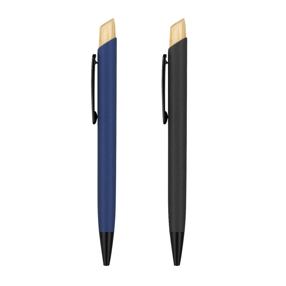 Available in two elegant colours, EcoGrain is a frost-coated ballpoint pen crafted from recycled aluminium with a bamboo detail. Features German ink and a Swiss-made 1mm TC tip for smooth writing.