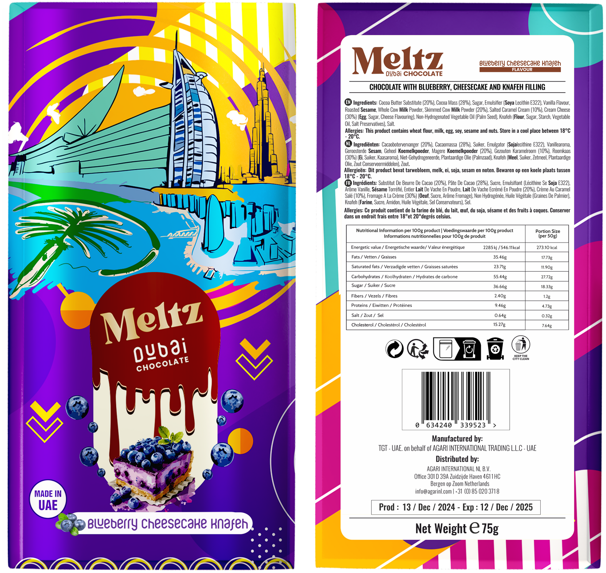 Meltz Dubai Chocolate Blueberry Cheesecake Knafeh 75g