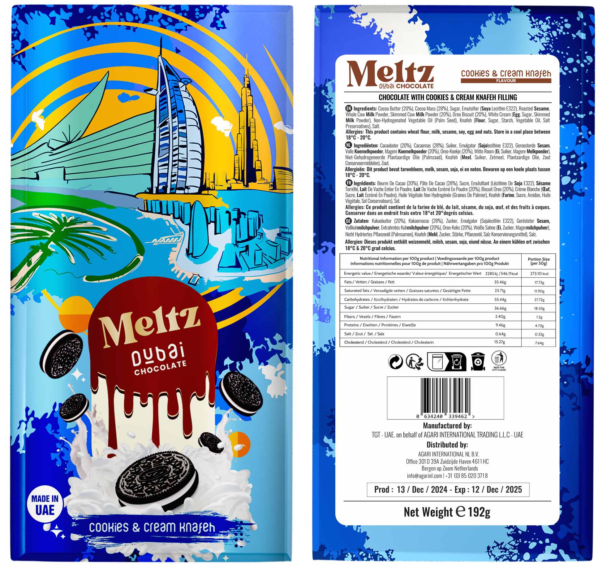 Meltz Dubai Chocolate Cookies & Cream Knafeh 192g