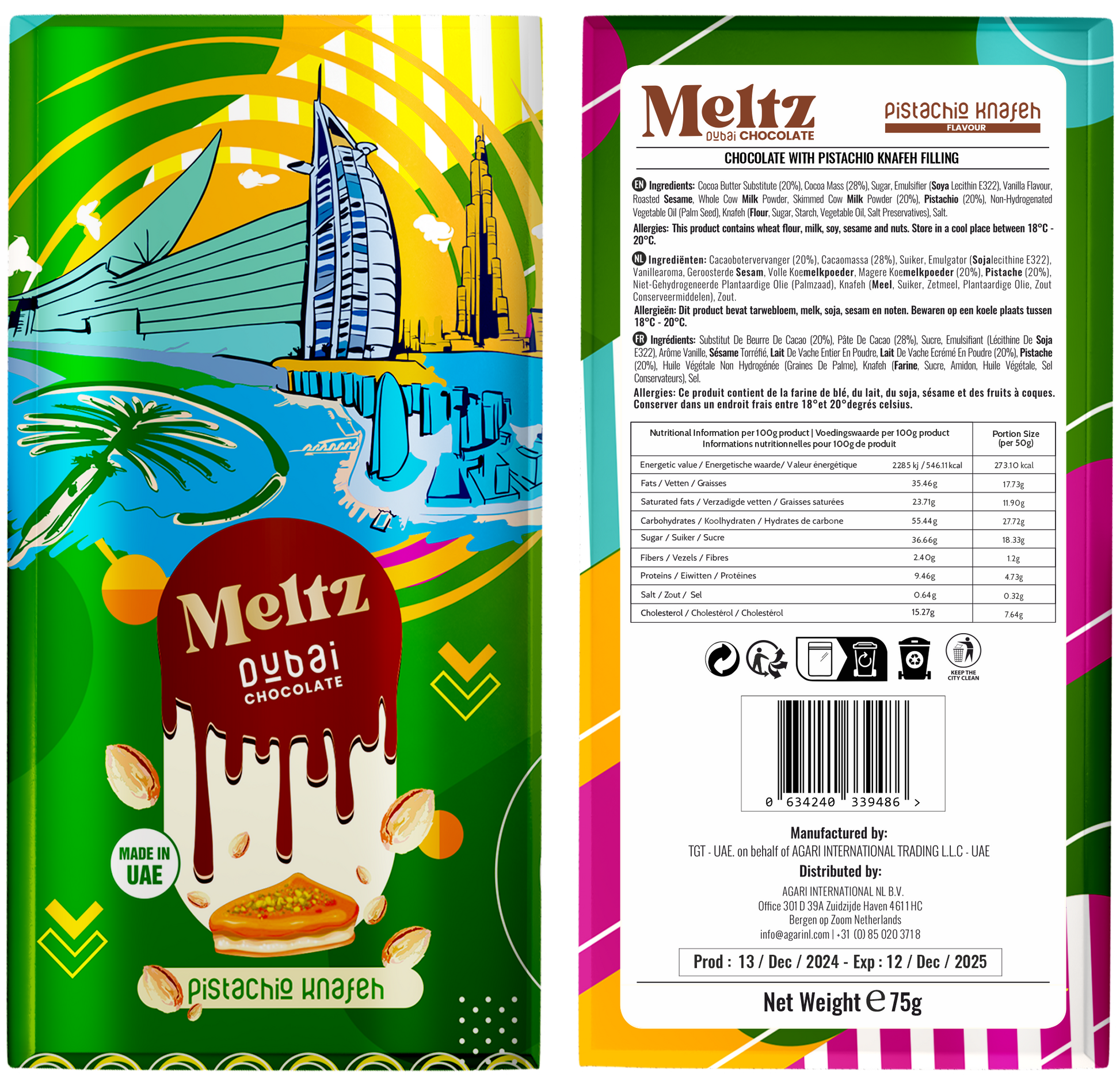 Meltz Dubai Chocolate Pistachio Knafeh 75g