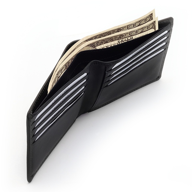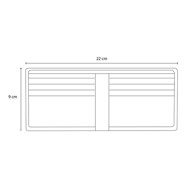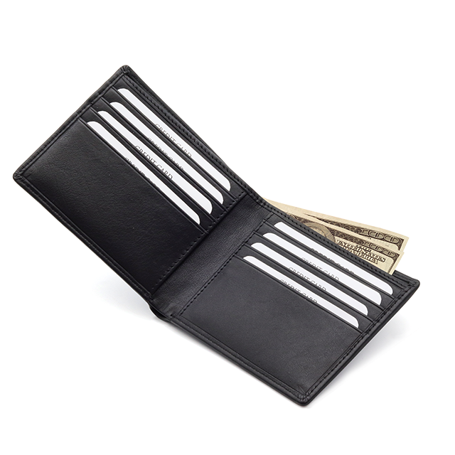 - تفاصيل داخلية: 2 حجرة للفواتير أو النقود، 2 جيب منزلق، 8 فتحات لبطاقات الائتمان