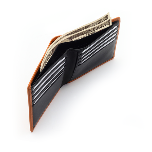 - تفاصيل داخلية: 2 حجرة للفواتير أو النقود، 2 جيب منزلق، 8 فتحات لبطاقات الائتمان