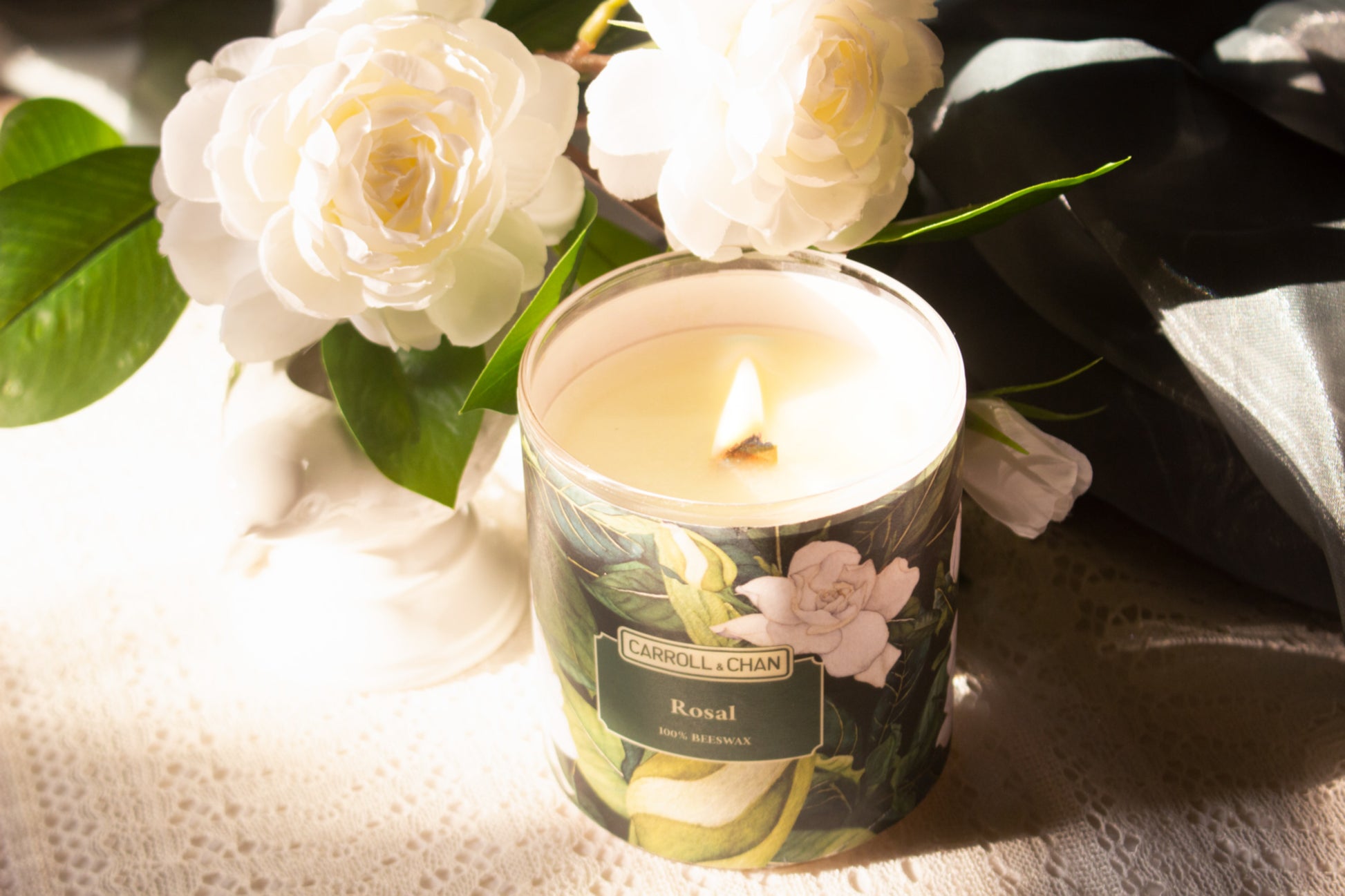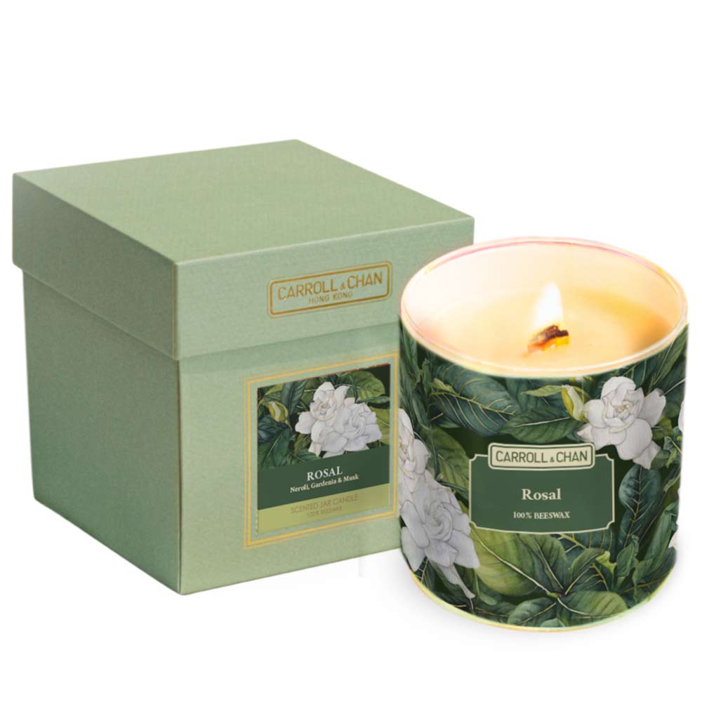 معطر برائحة النيرولي والغاردينيا والمسك. تم إنشاء العمل الفني لعطر Rosal بواسطة الفنانة الفلبينية رينا غابرييل حصريًا لـ Carroll & Chan.