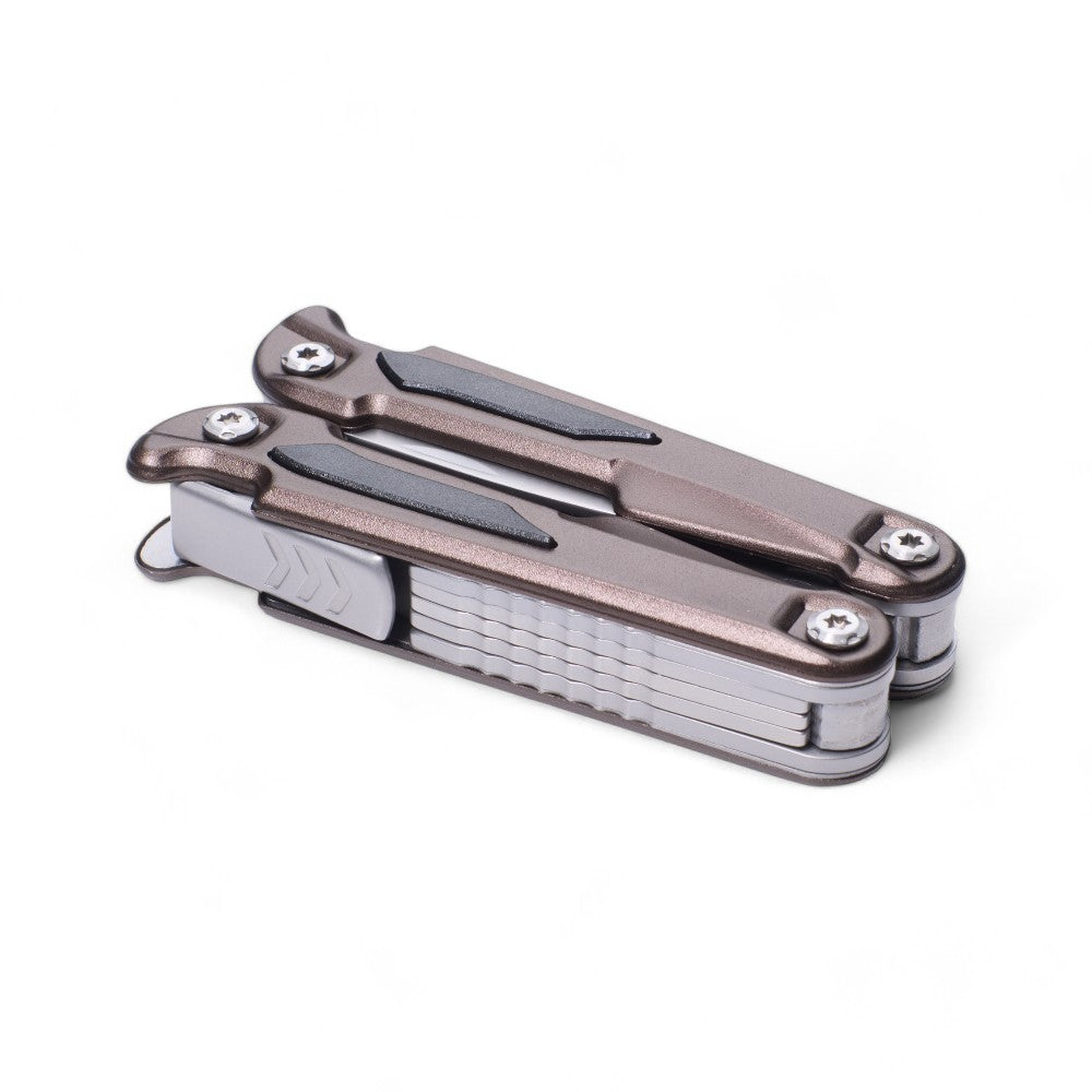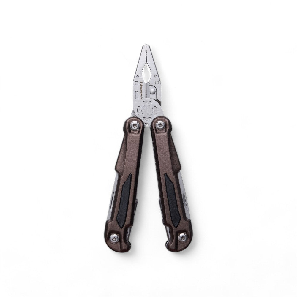 A premium-quality stainless steel heavy-duty multi-tool. Comes with a pouch with belt strap