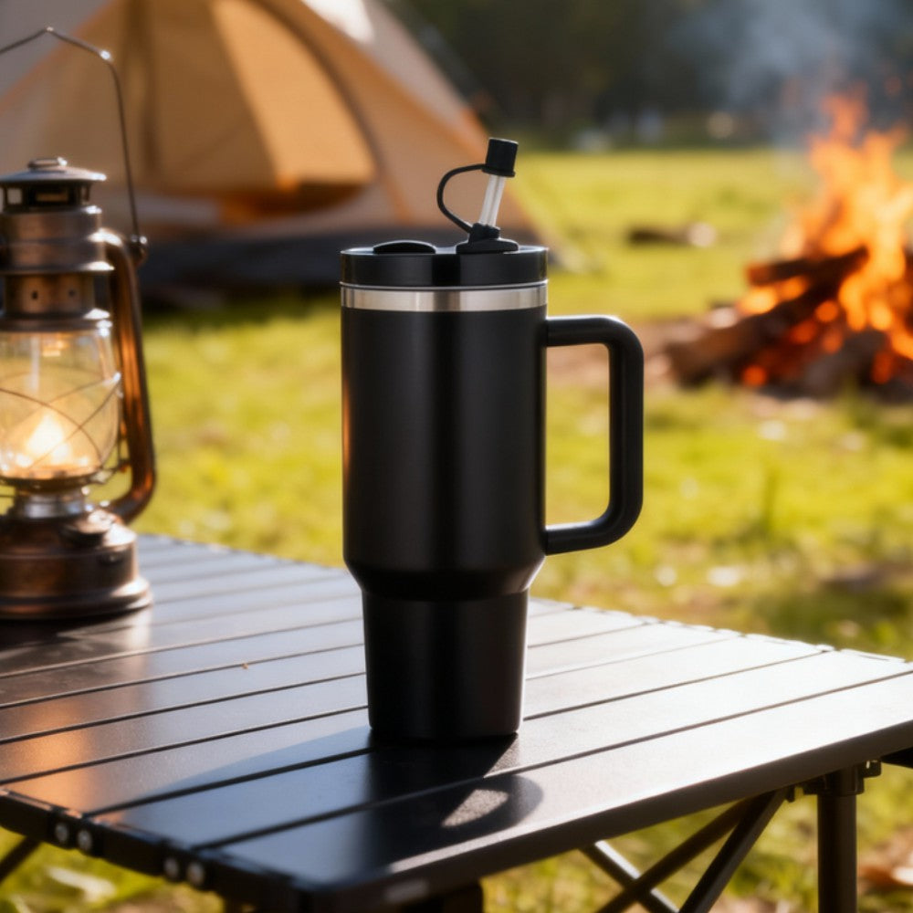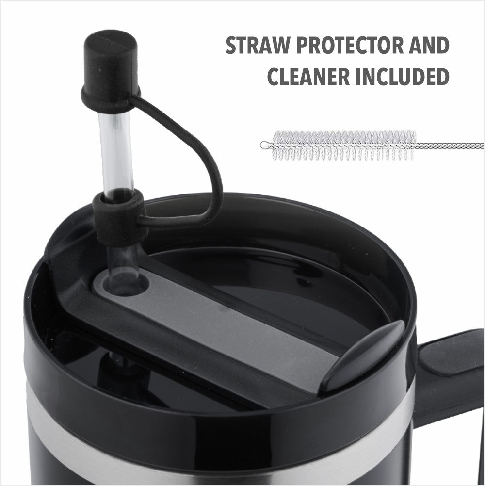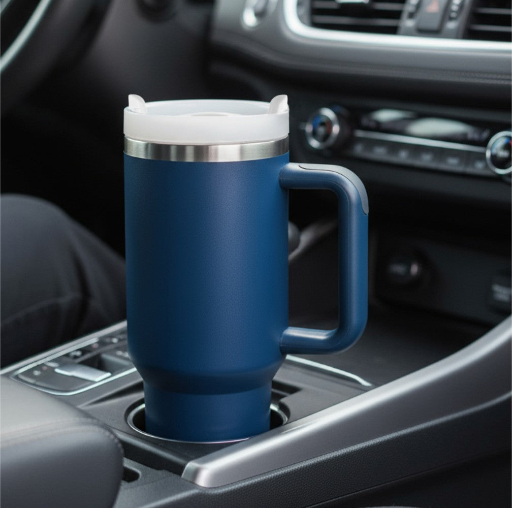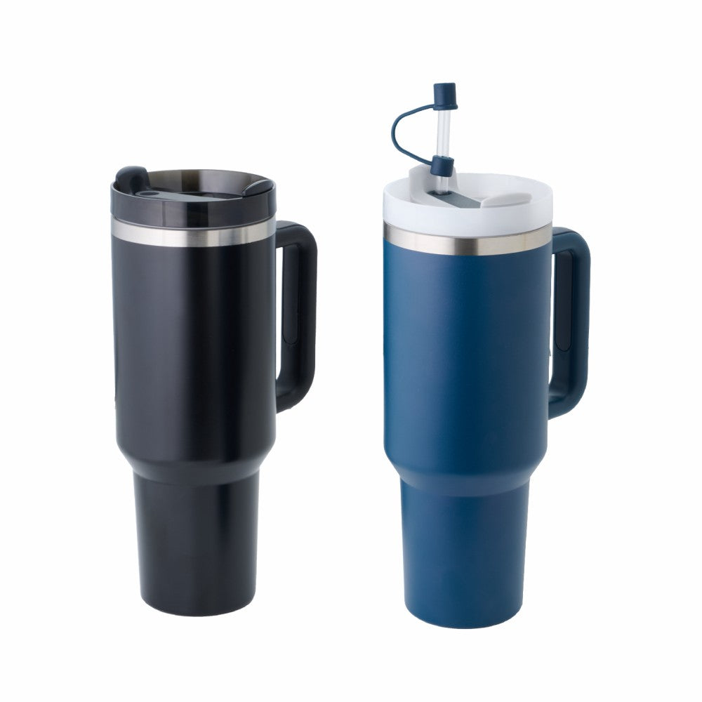 Take your drinks anywhere with SipMate — a 40oz / 1180ml mug with a comfy handle, straw, and straw protector. Keeps you sipping all day, whether you’re at your desk, in the car, or on the move. Available in cool blue and classic black.