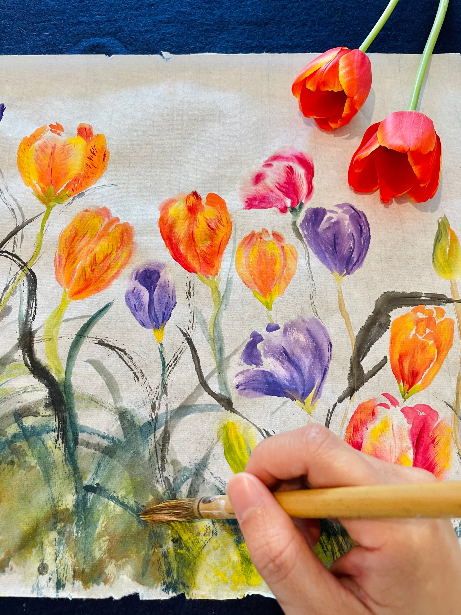 The artwork for Tulips was created by Hong Kong artist Kathy Fung.